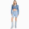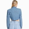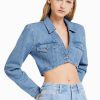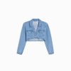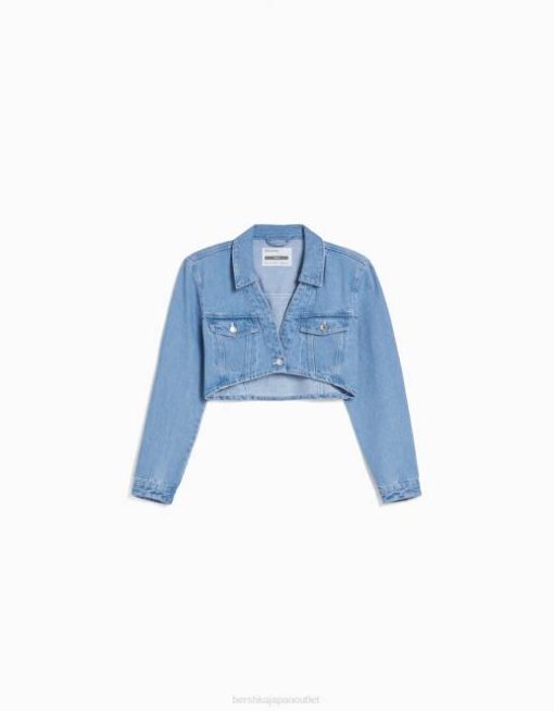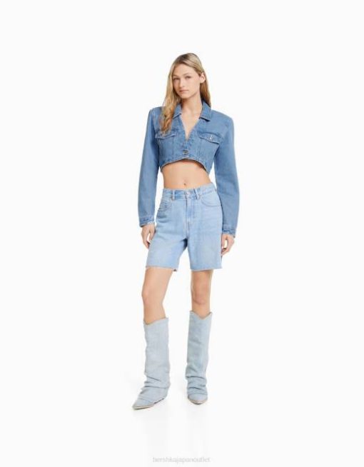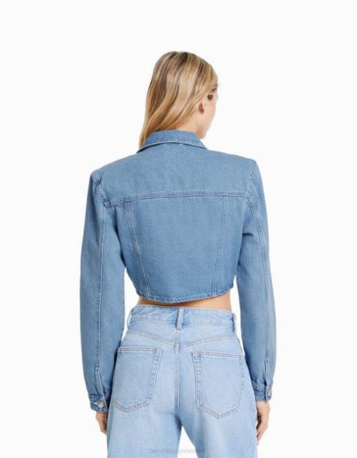 女性 Bershka パッド入りショルダー付きクロップドデニムジャケット 60441101 衣類 ライトブルー
