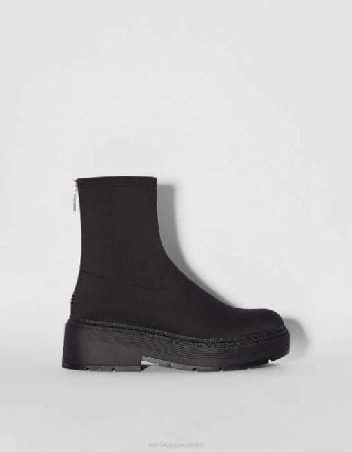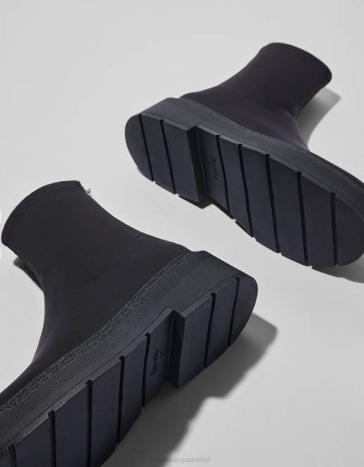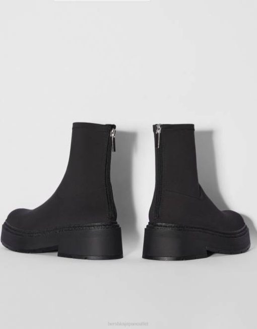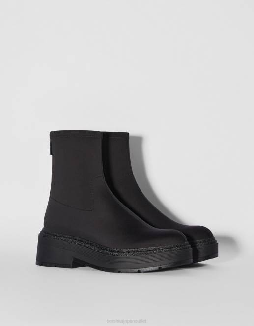 女性 Bershka フィットしたフラットアンクルブーツ 60442305 履物 黒