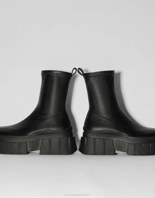 女性 Bershka フィットしたプラットフォームブーツ 60442323 履物 黒