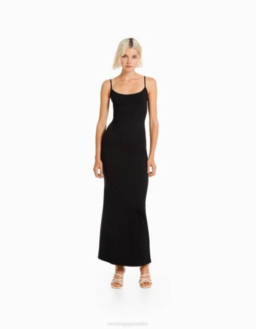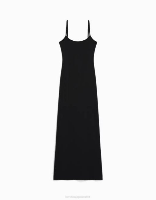 女性 Bershka フィットしたロングストラップドレス 604415 衣類 黒