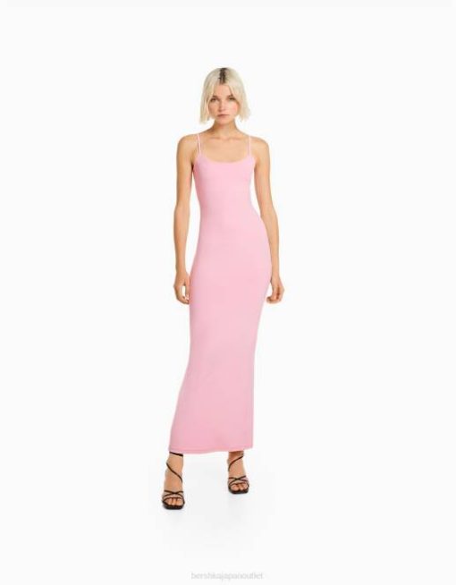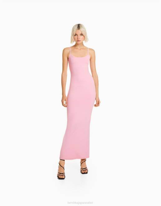 女性 Bershka フィットしたロングストラップドレス 604419 衣類 ピンク
