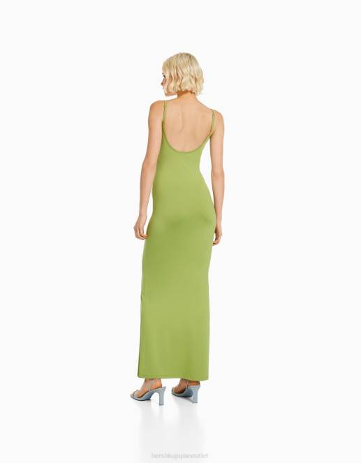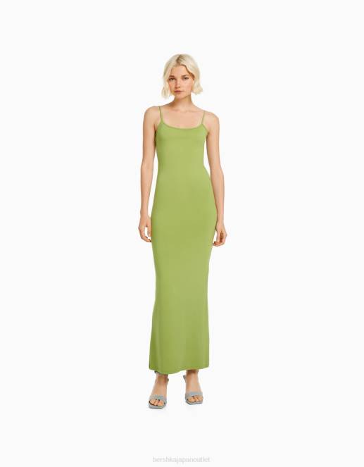 女性 Bershka フィットしたロングストラップドレス 60441913 衣類 緑
