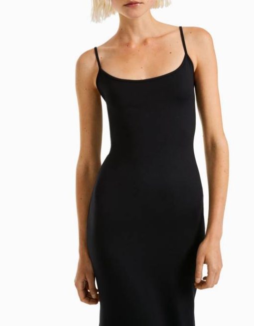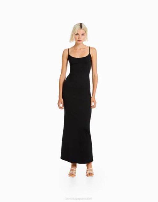 女性 Bershka フィットしたロングストラップドレス 604422 衣類 黒
