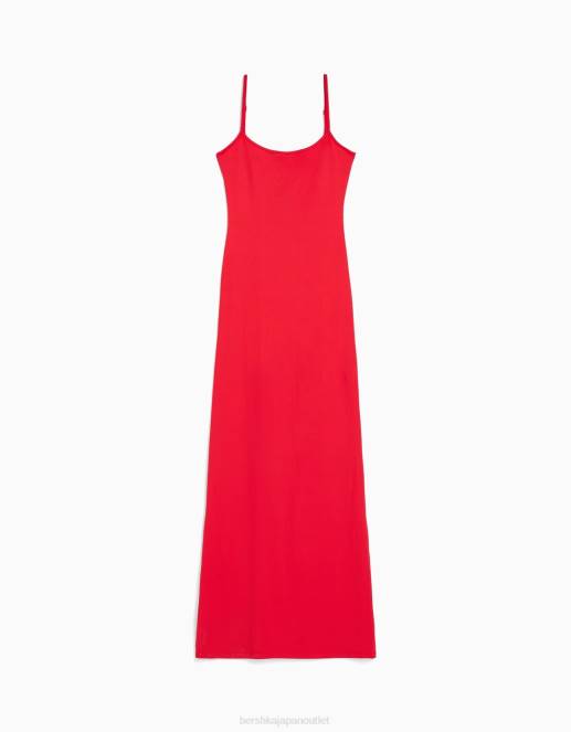 女性 Bershka フィットしたロングストラップドレス 604423 衣類 赤