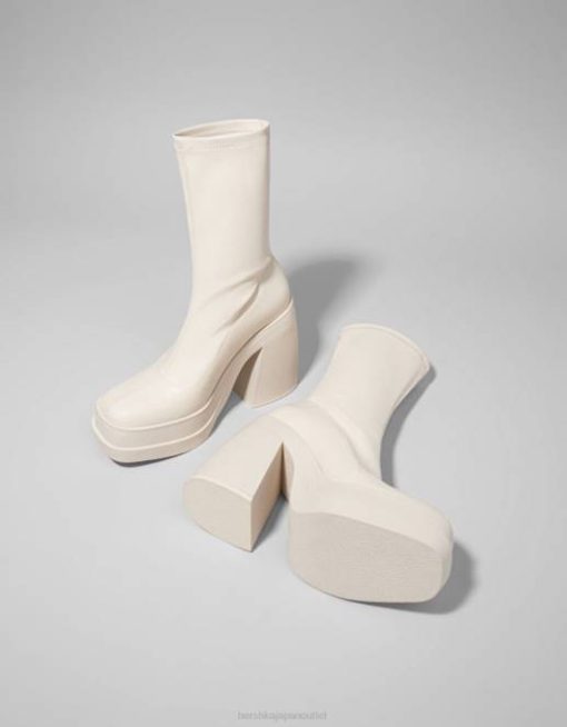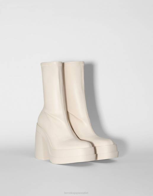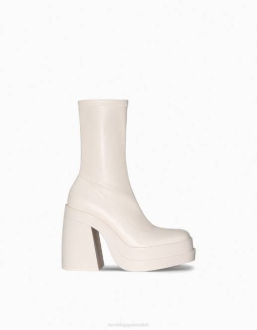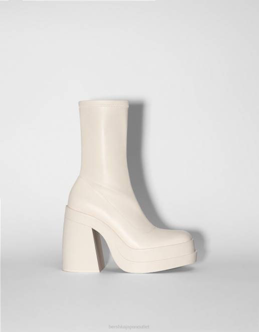 女性 Bershka フィットハイヒールプラットフォームアンクルブーツ 60442296 履物 生成り