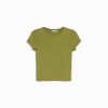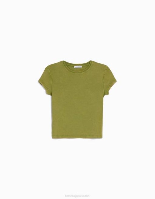 女性 Bershka フィット半袖Tシャツ 6044479 衣類 緑