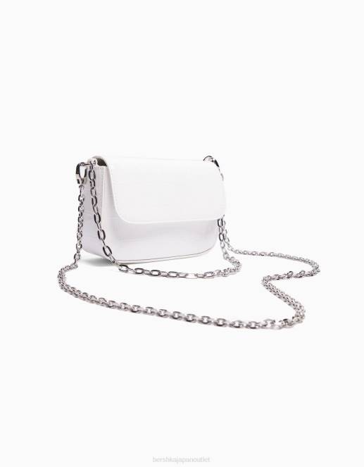 女性 Bershka フェイクパテントチェーンハンドバッグ 60442385 アクセサリー 白