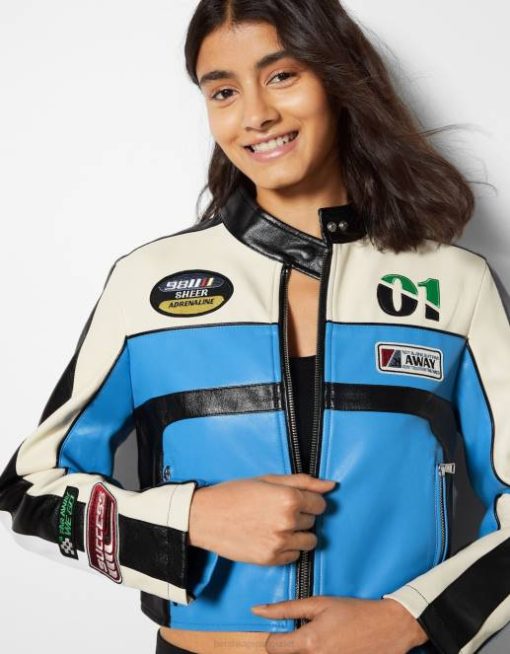 女性 Bershka フェイクレザーレーシングジャケット 60441099 衣類 エクスクルーシブ