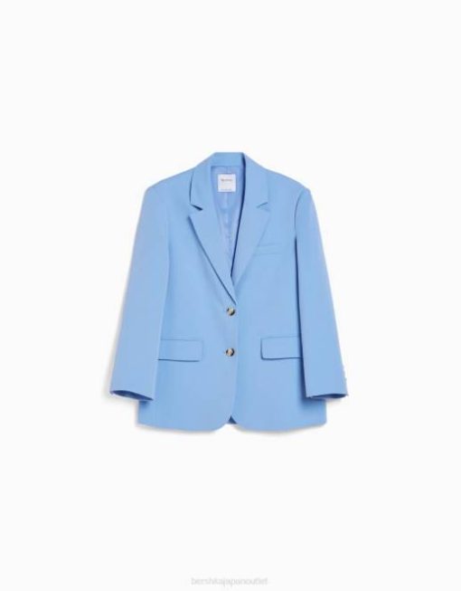 女性 Bershka フェミニンなフィット感のルーズフィット テーラード ブレザー 60442006 衣類 ライトブルー