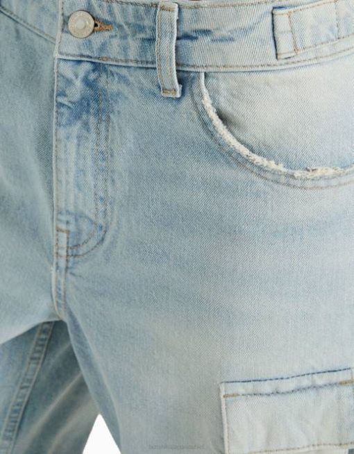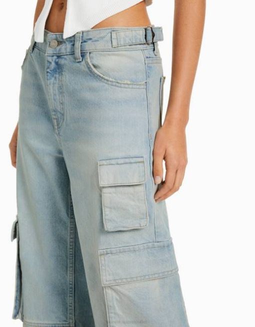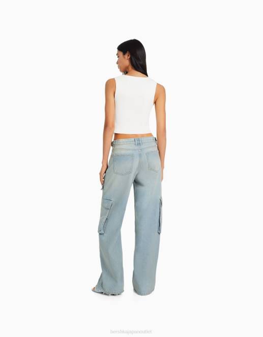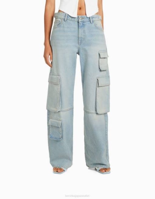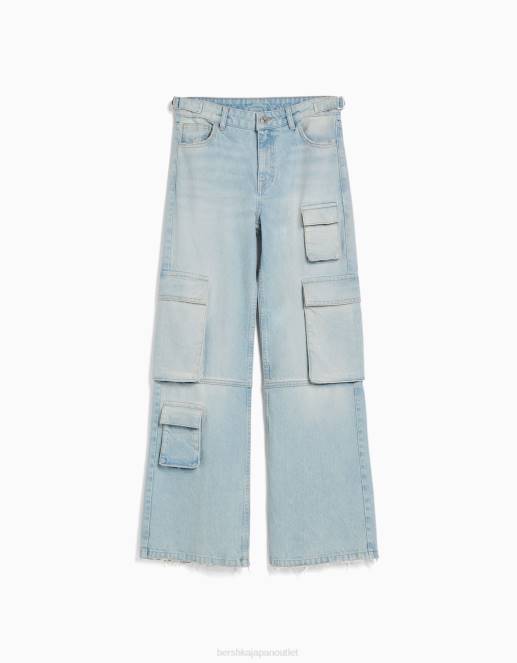 女性 Bershka フェード マルチポケット カーゴジーンズ 60441878 衣類 ライトブルー