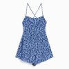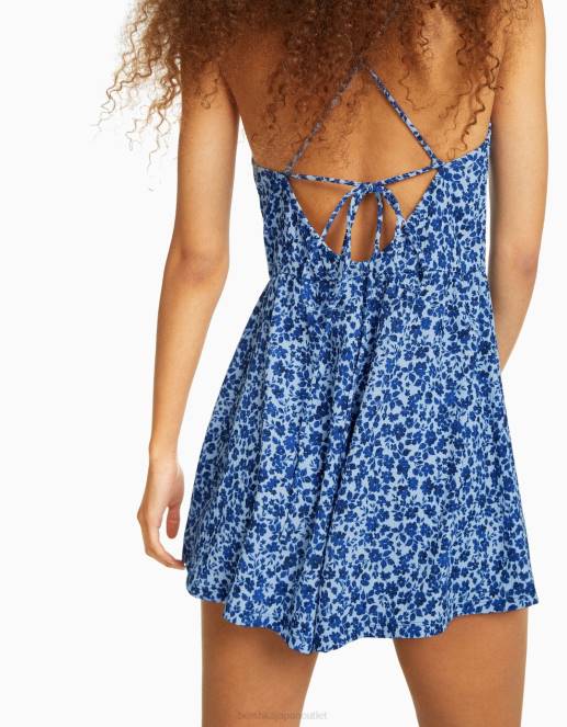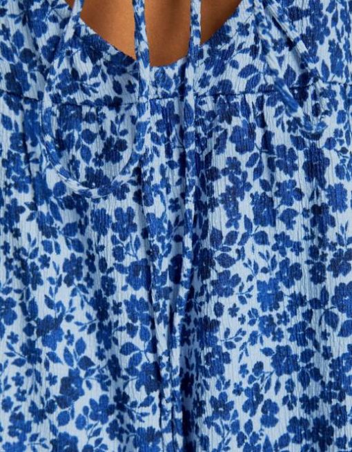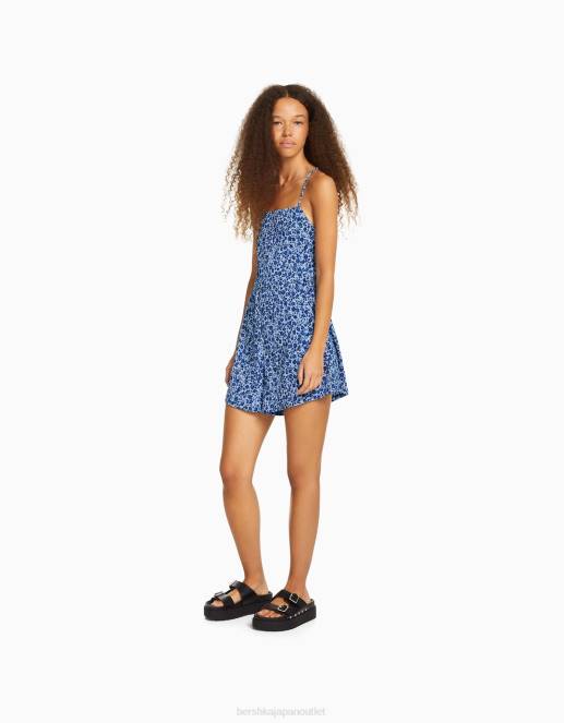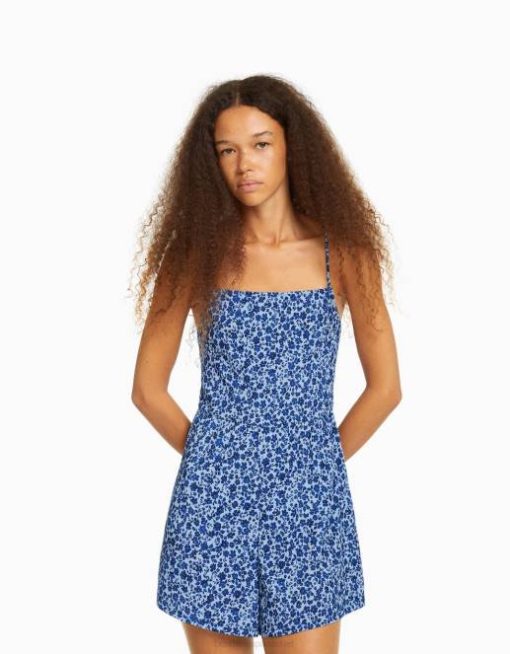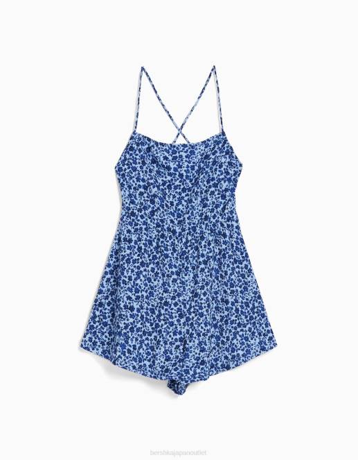 女性 Bershka フラワープリント ロンパース ストラップ付き 6044274 衣類 青