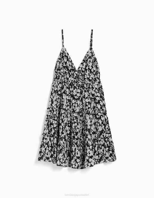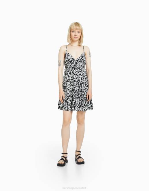 女性 Bershka フリルストラップ付きミニドレス 60444089 衣類 白黒