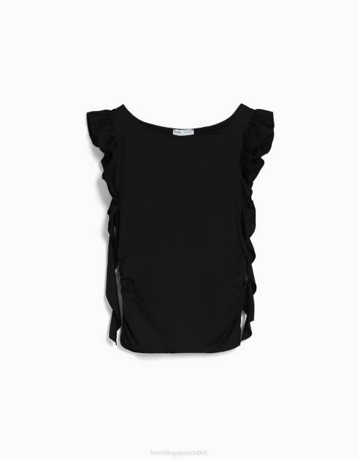 女性 Bershka フリル半袖Tシャツ 6044301 衣類 黒