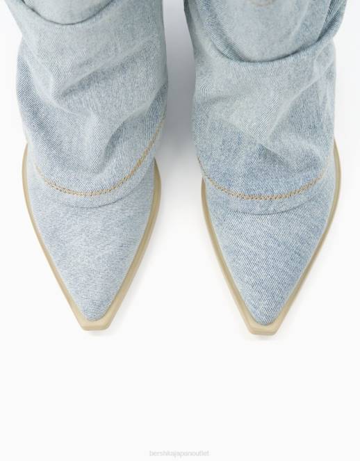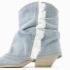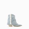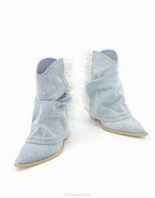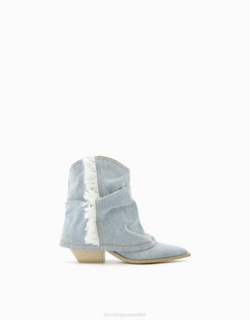 女性 Bershka フリンジ付きデニム カウボーイ アンクルブーツ 60441833 履物 洗い流された青