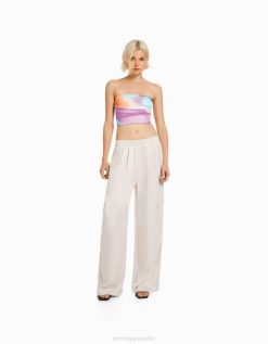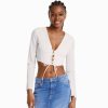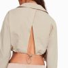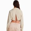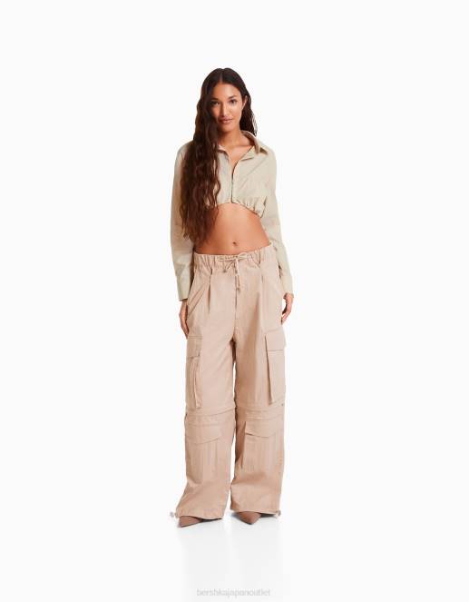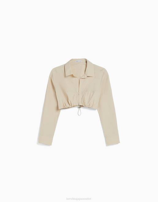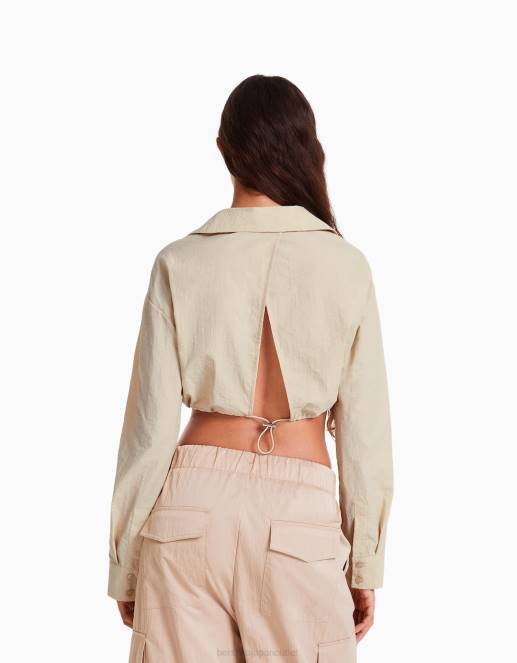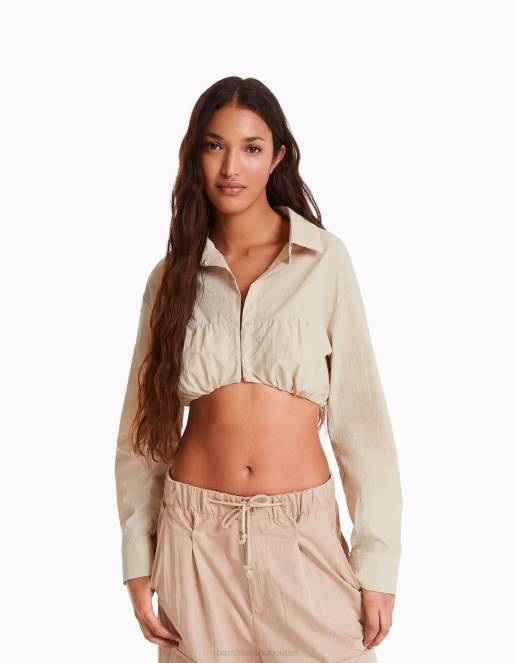 女性 Bershka フロントにギャザーを寄せた長袖のクロップドナイロンシャツとストッパー付き 6044940 衣類 結石