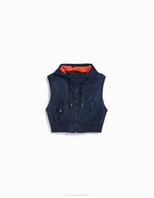 女性 Bershka フード付きクロップドボンバーベスト 60441171 衣類 海軍