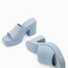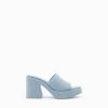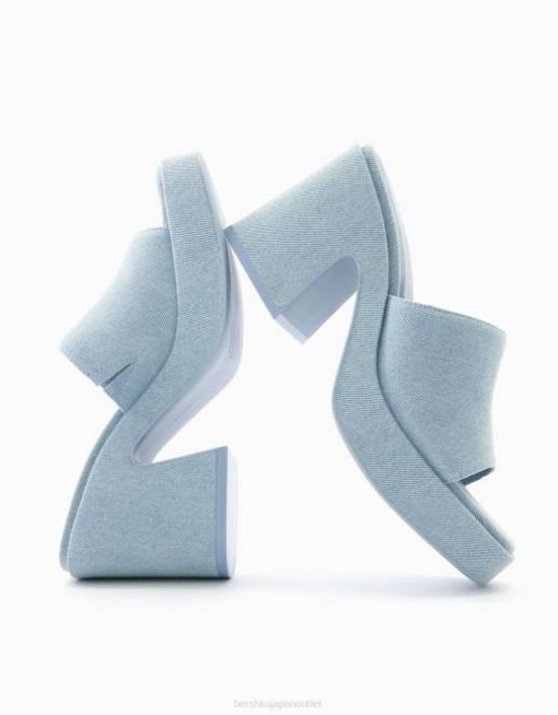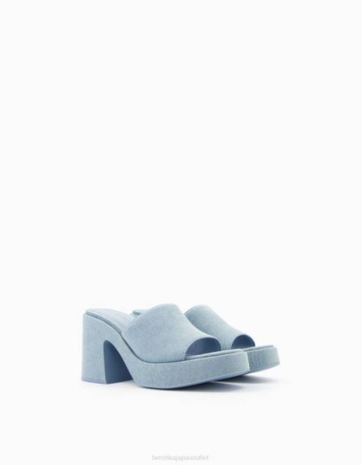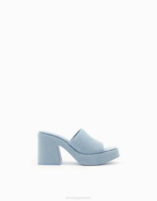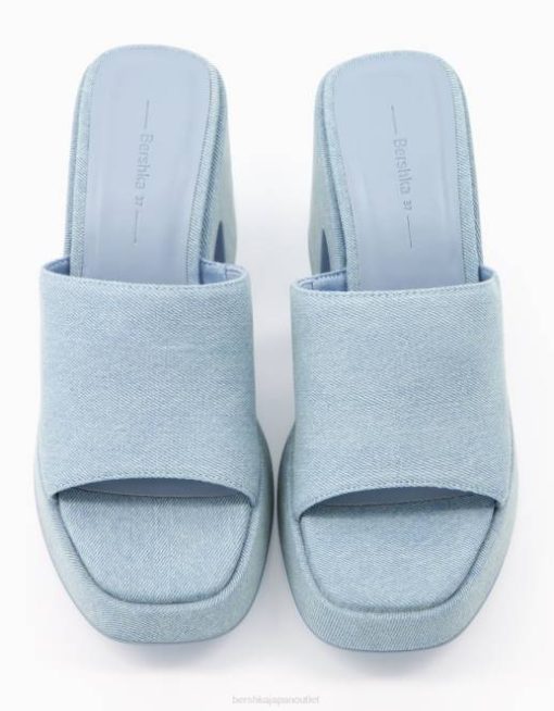 女性 Bershka プラットフォームヒール デニムミュール 60441965 履物 洗い流された青