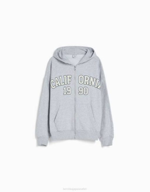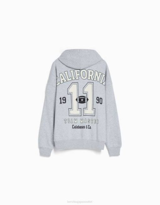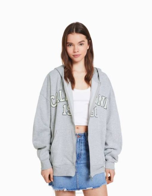 女性 Bershka プリントオーバーサイズジッパーパーカー 60441242 衣類 グレー
