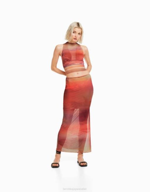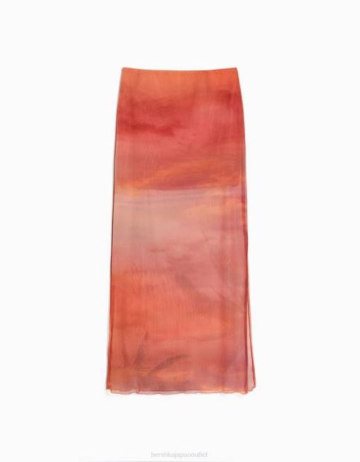 女性 Bershka プリントチュールミディスカート 60441645 衣類 他の