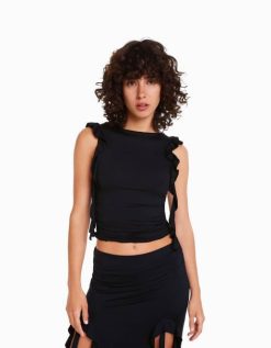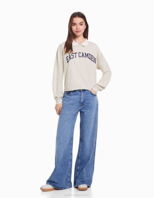 女性 Bershka プリントポロカラーロングスリーブTシャツ 6044620 衣類 結石