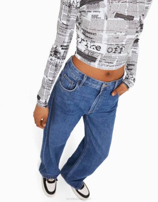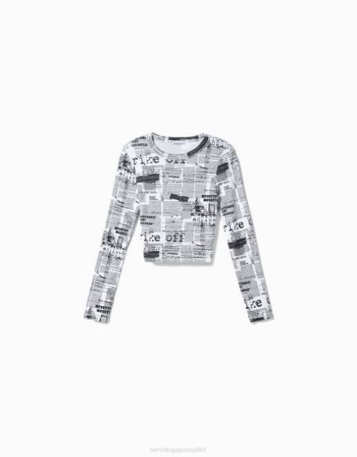 女性 Bershka プリント付き長袖Tシャツ 6044614 衣類 白