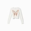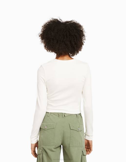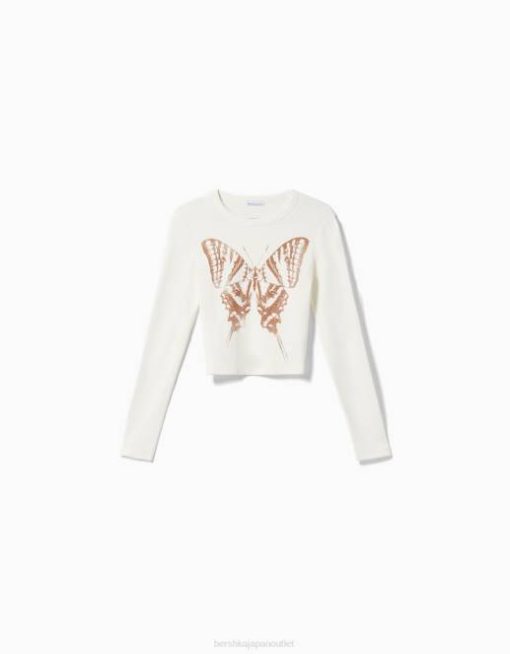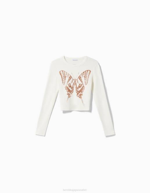 女性 Bershka プリント付き長袖Tシャツ 6044616 衣類 クリーム