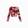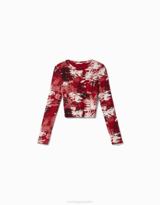 女性 Bershka プリント付き長袖Tシャツ 6044623 衣類 赤