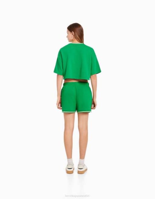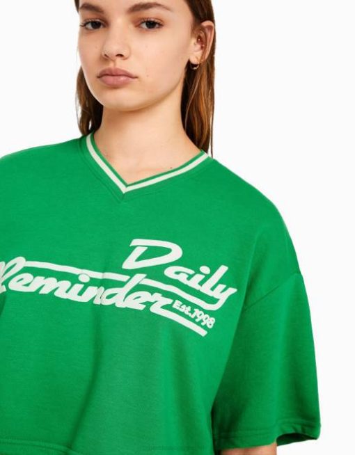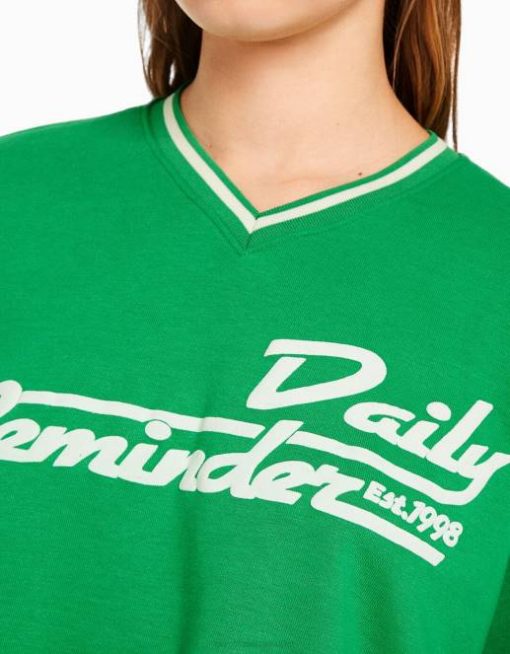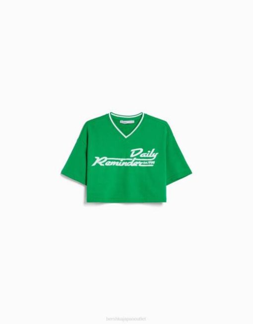 女性 Bershka プリント付き Vネック 半袖スウェットシャツ 6044586 衣類 緑