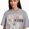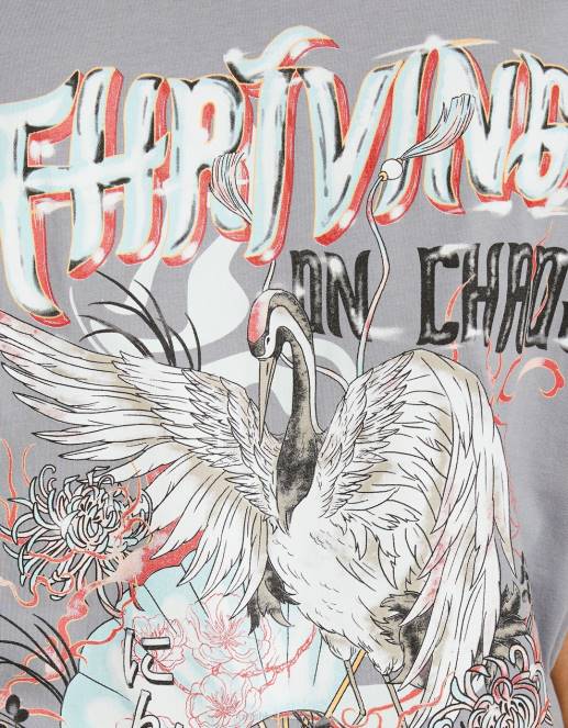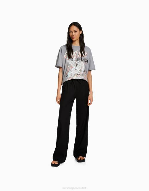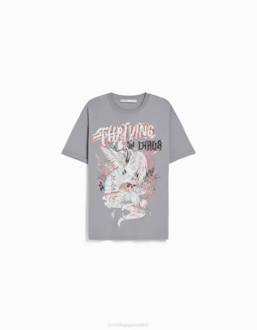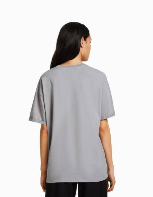 女性 Bershka プリント半袖オーバーサイズTシャツ 6044431 衣類 濃い灰色