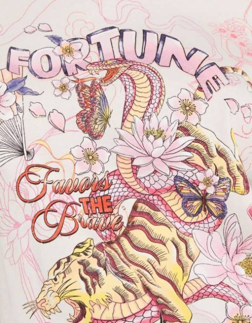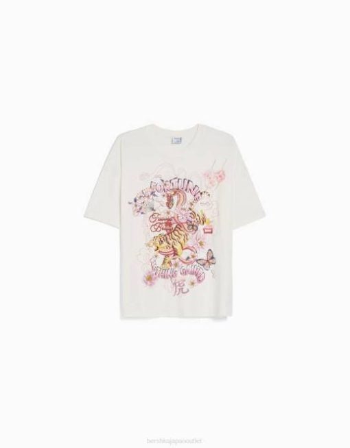 女性 Bershka プリント半袖Tシャツ 6044329 衣類 クリーム