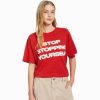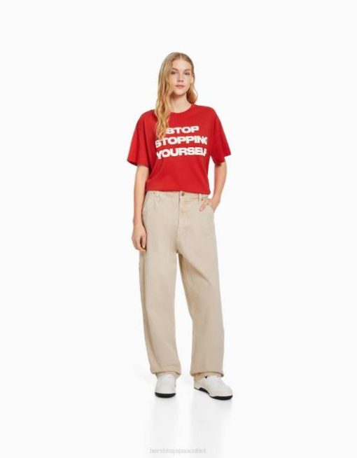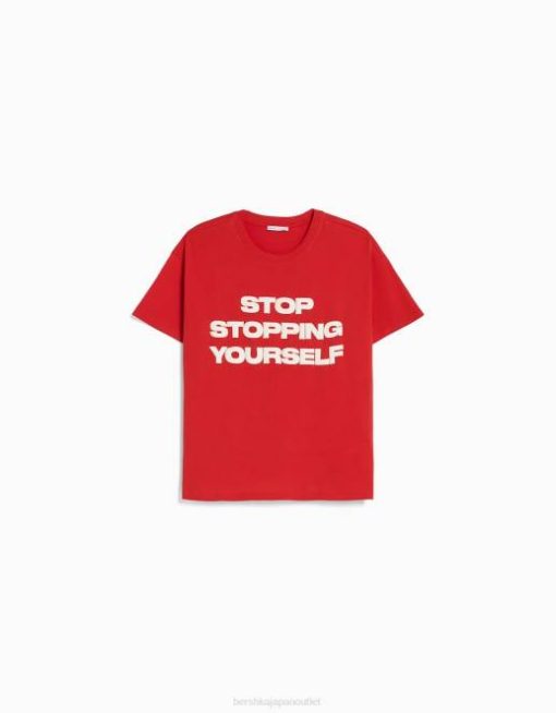 女性 Bershka プリント半袖Tシャツ 6044405 衣類 赤