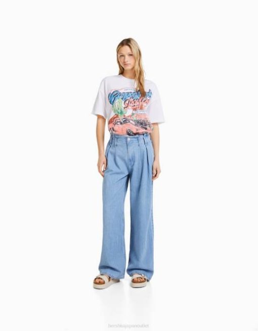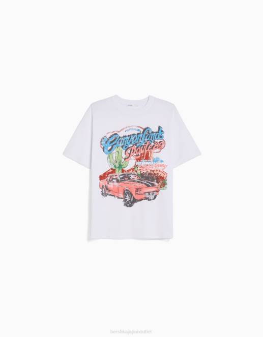 女性 Bershka プリント半袖Tシャツ 6044442 衣類 白