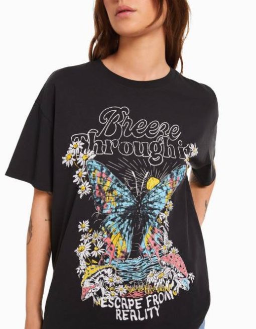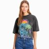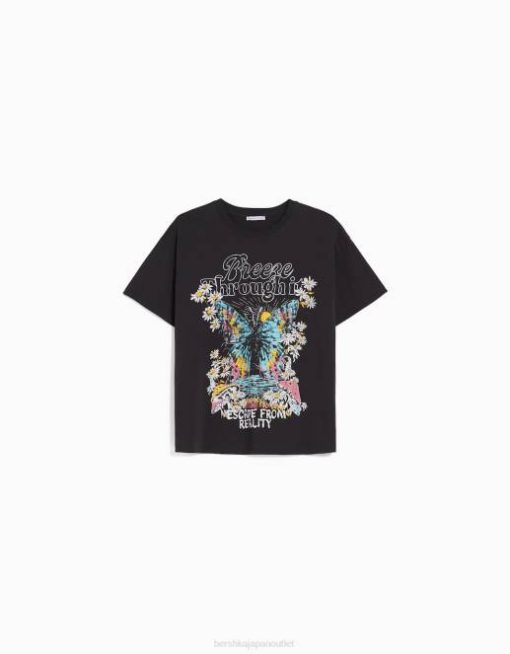 女性 Bershka プリント半袖Tシャツ 6044468 衣類 濃い灰色
