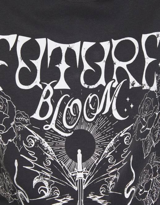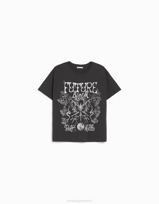 女性 Bershka プリント半袖Tシャツ 6044504 衣類 濃い灰色