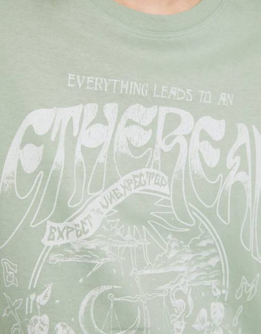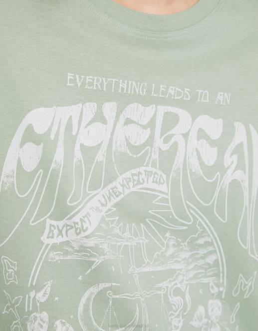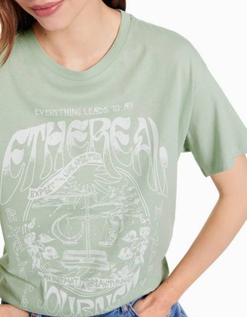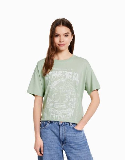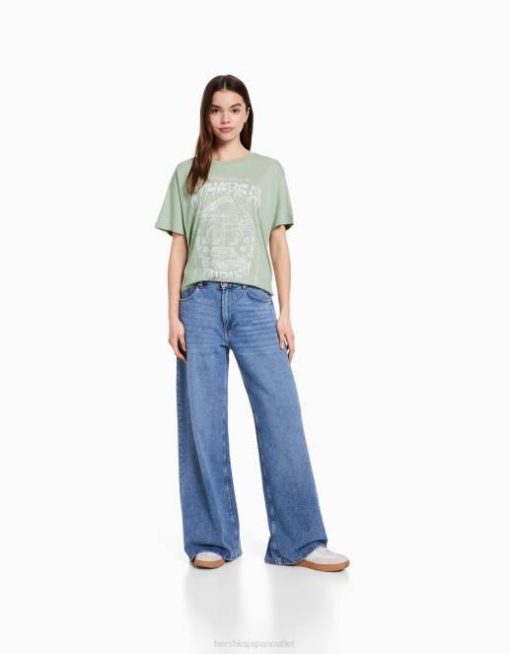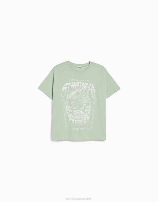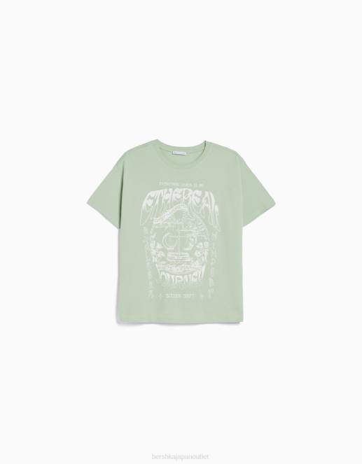女性 Bershka プリント半袖Tシャツ 6044505 衣類 緑