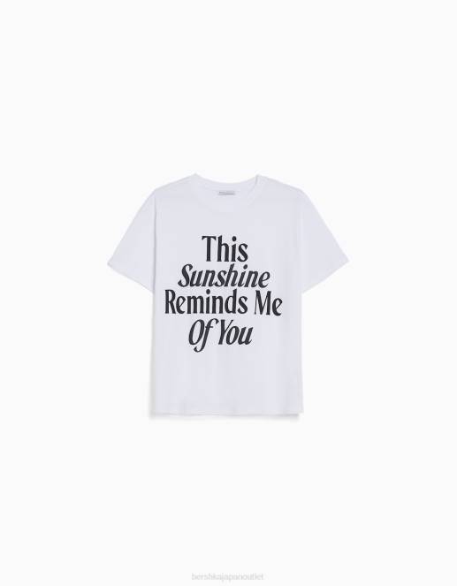 女性 Bershka プリント半袖Tシャツ 6044543 衣類 白