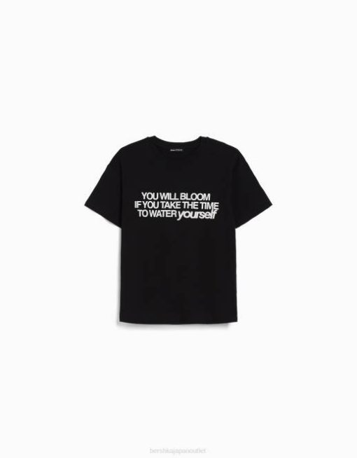 女性 Bershka プリント半袖Tシャツ 6044544 衣類 黒