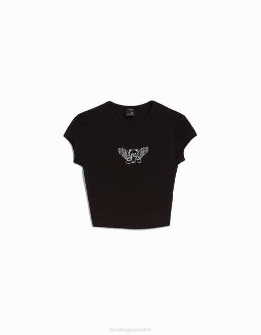 女性 Bershka プリント半袖Tシャツ 6044594 衣類 黒