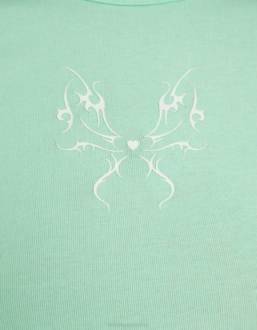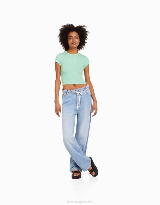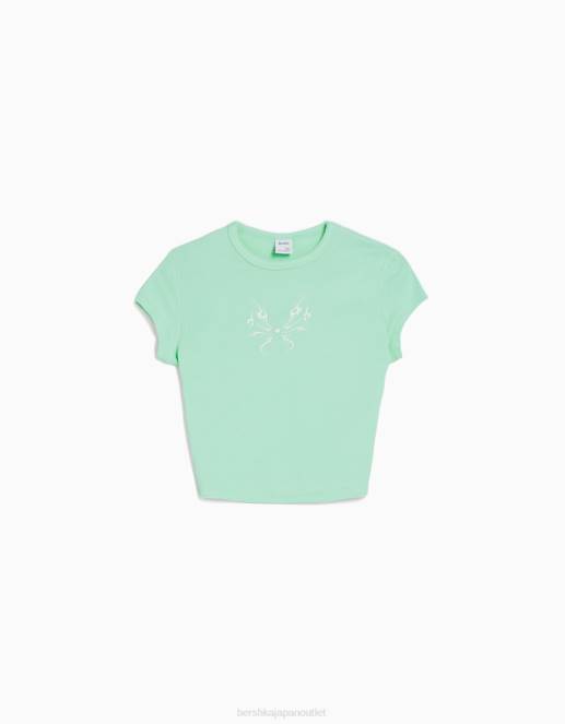 女性 Bershka プリント半袖Tシャツ 6044598 衣類 緑