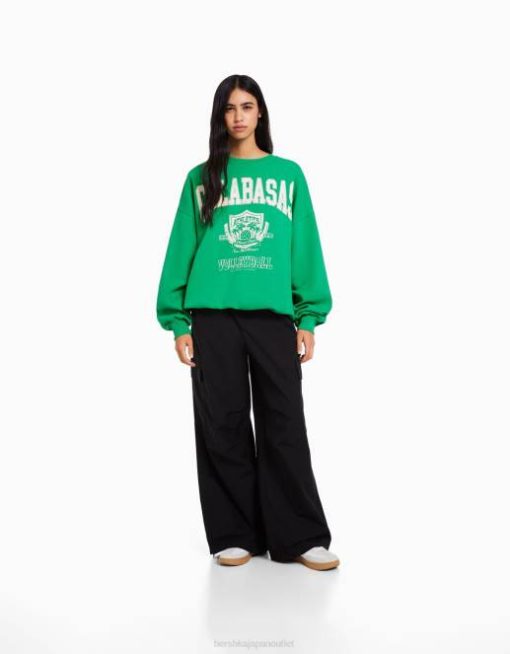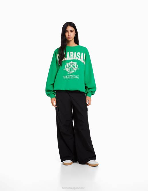 女性 Bershka プリント長袖スウェットシャツ 60441235 衣類 緑