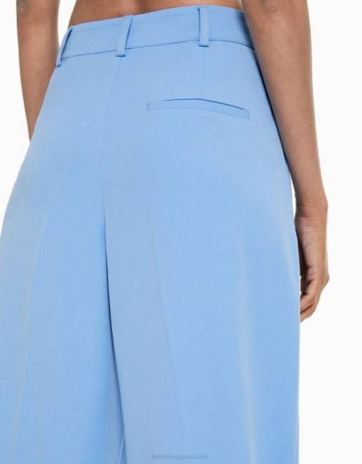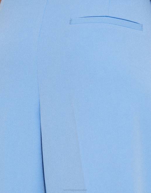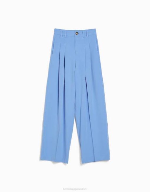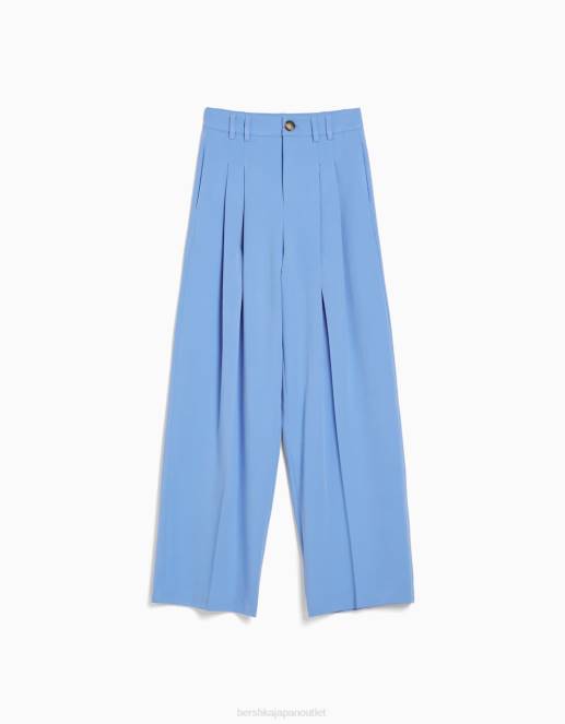 女性 Bershka プリーツ付きストレートフィットテーラードパンツ 60441420 衣類 ライトブルー