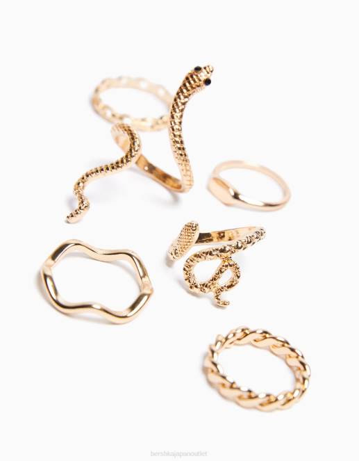 女性 Bershka ヘビリング6個セット 60442521 アクセサリー 金