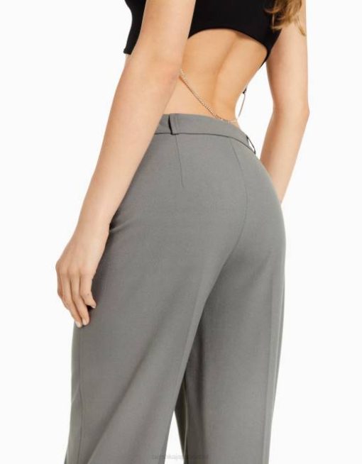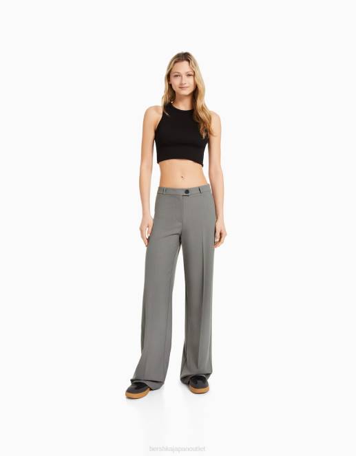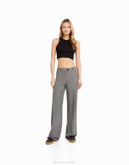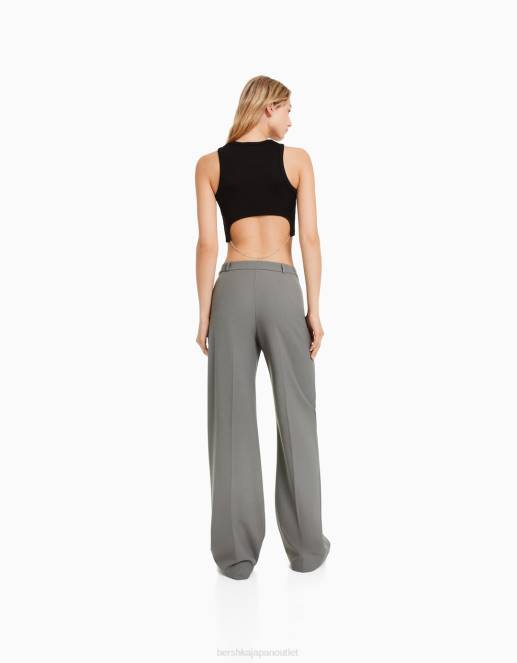 女性 Bershka ベルトループ付きワイドレッグテーラードパンツ 60441440 衣類 エクスクルーシブ