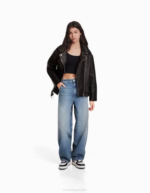女性 Bershka ベルト付きフェイクレザーバイカージャケット 60441133 衣類 黒