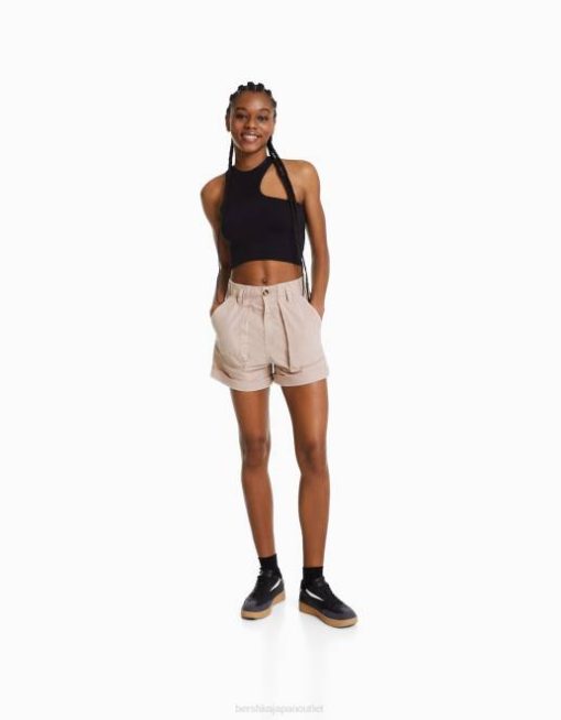 女性 Bershka ペーパーバッグコットンバミューダショーツ 60441689 衣類 ピンク