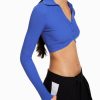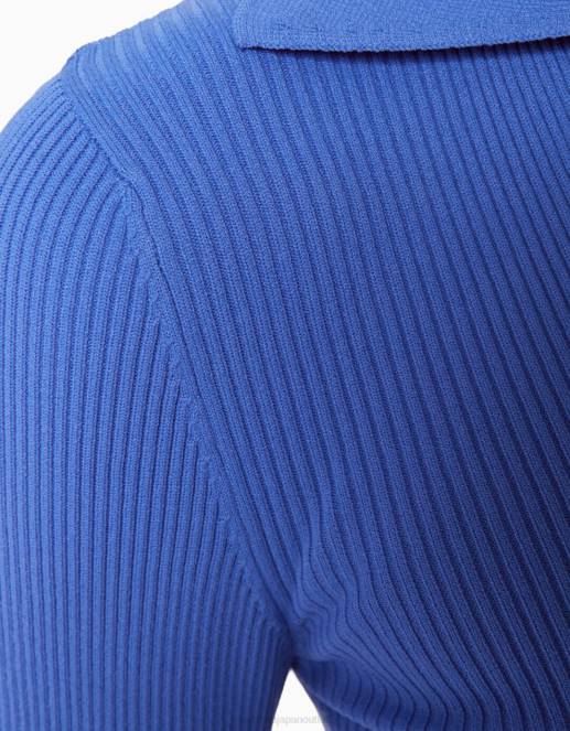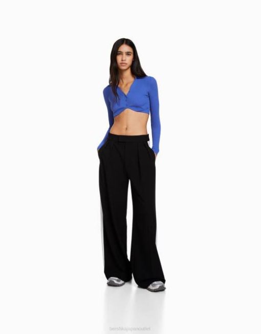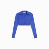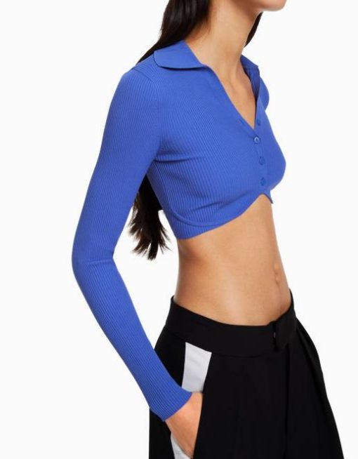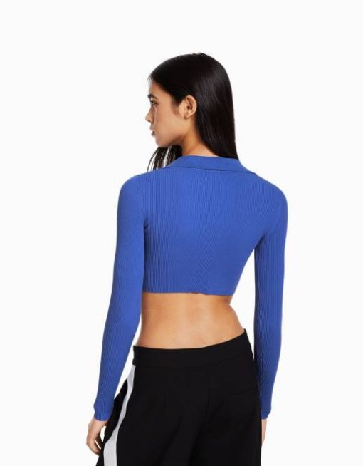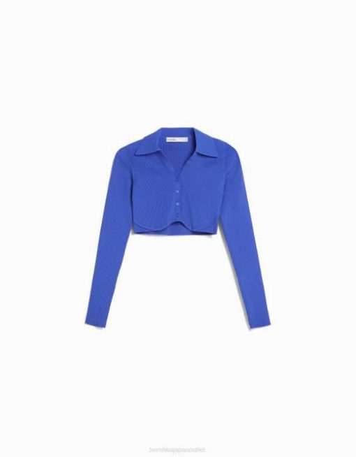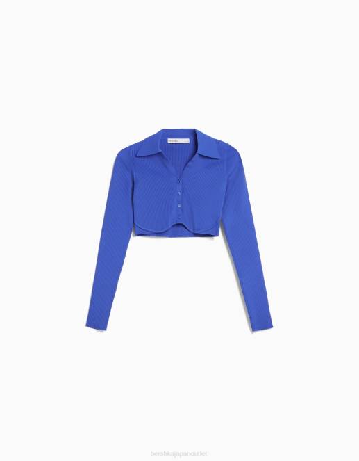 女性 Bershka ボタン付きクロップドポロカラーカーディガン 6044563 衣類 濃紺