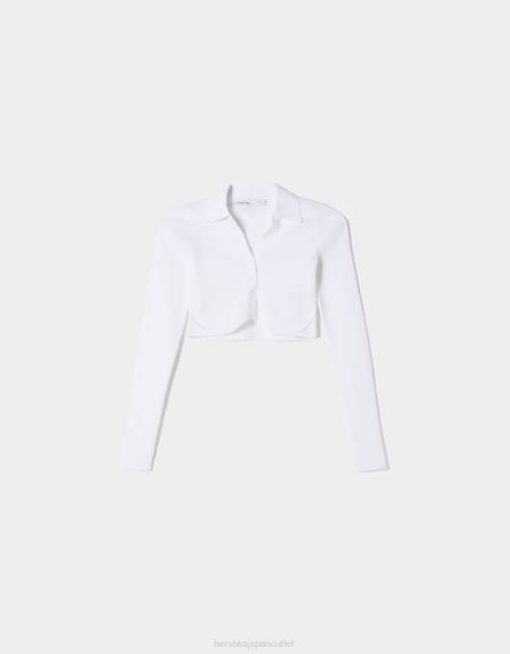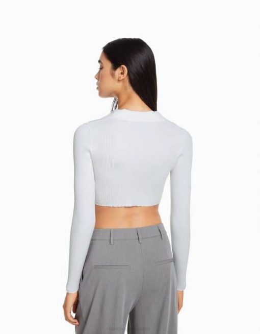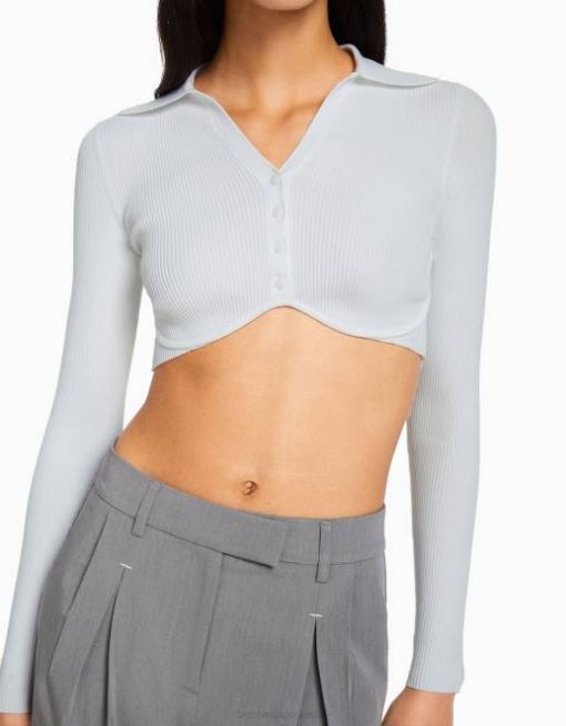 女性 Bershka ボタン付きクロップドポロカラーカーディガン 6044562 衣類 白