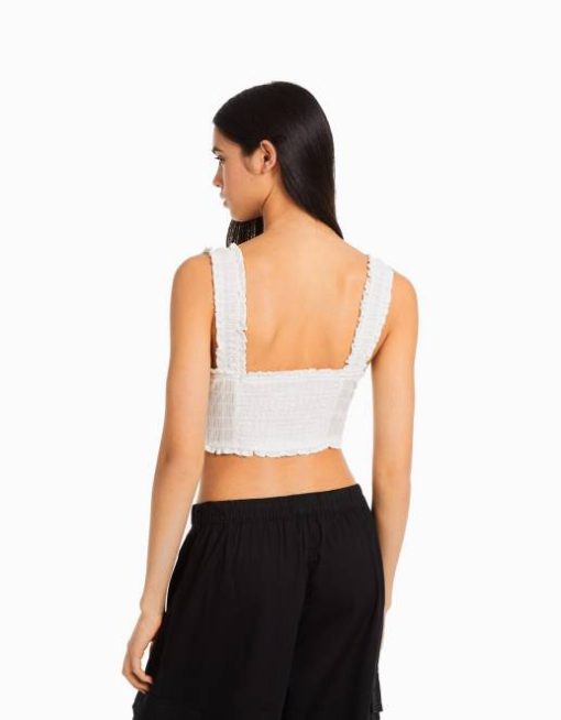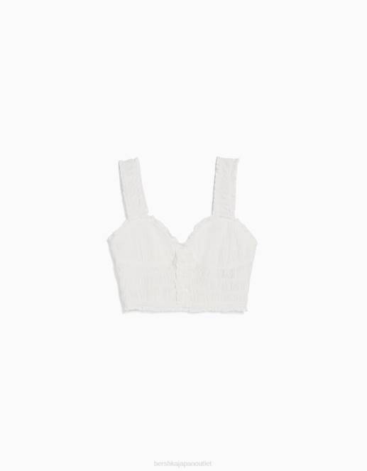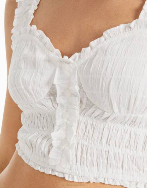 女性 Bershka ボタン付きストラップトップ 6044737 衣類 白