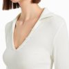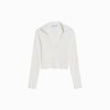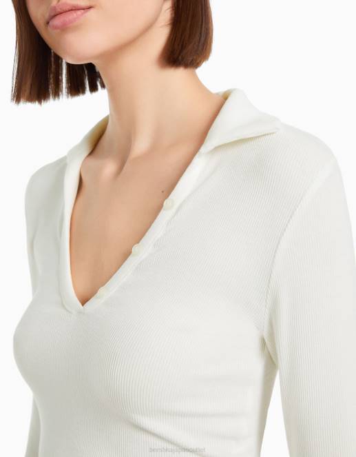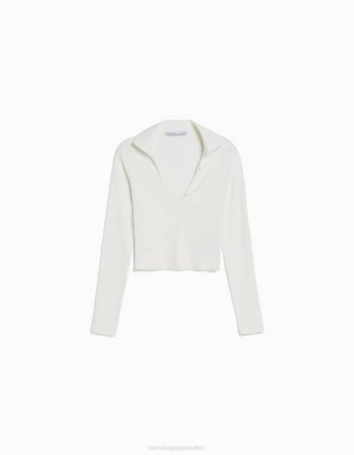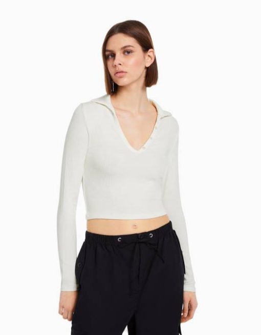 女性 Bershka ボタン付きポロカラー付き長袖Tシャツ 6044445 衣類 クリーム