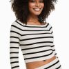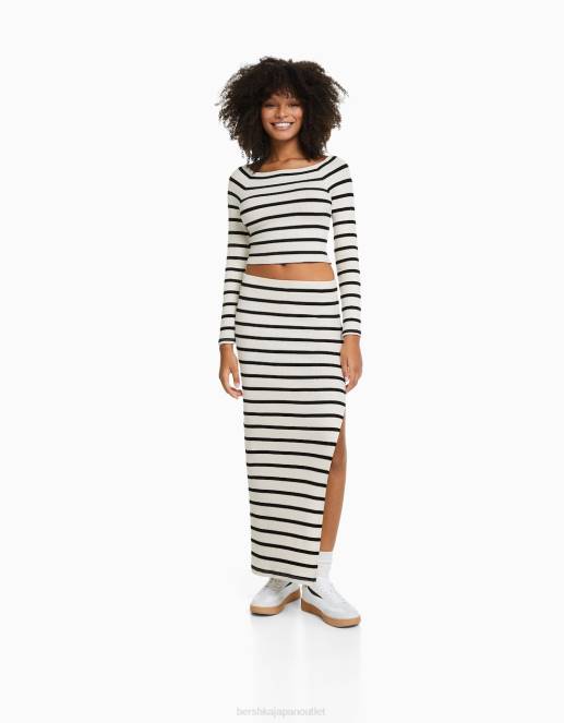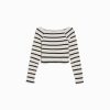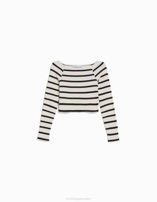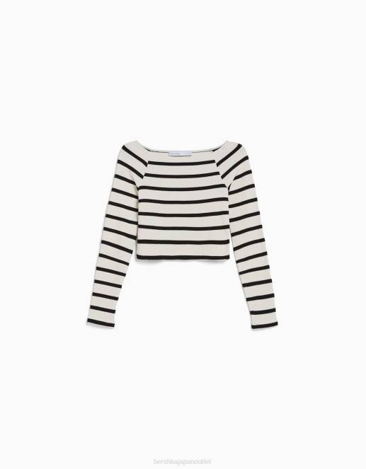 女性 Bershka ボートネックのストライプ長袖Tシャツ 6044519 衣類 青